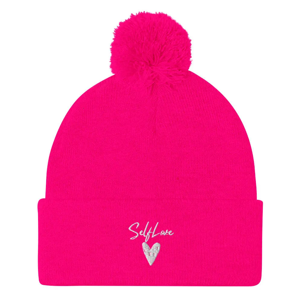 Self Love - Pom-Pom Beanie - Winter Beanie with Embroidery